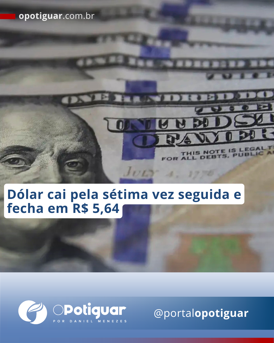 Dólar cai pela sétima vez seguida e fecha em R$ 5,64