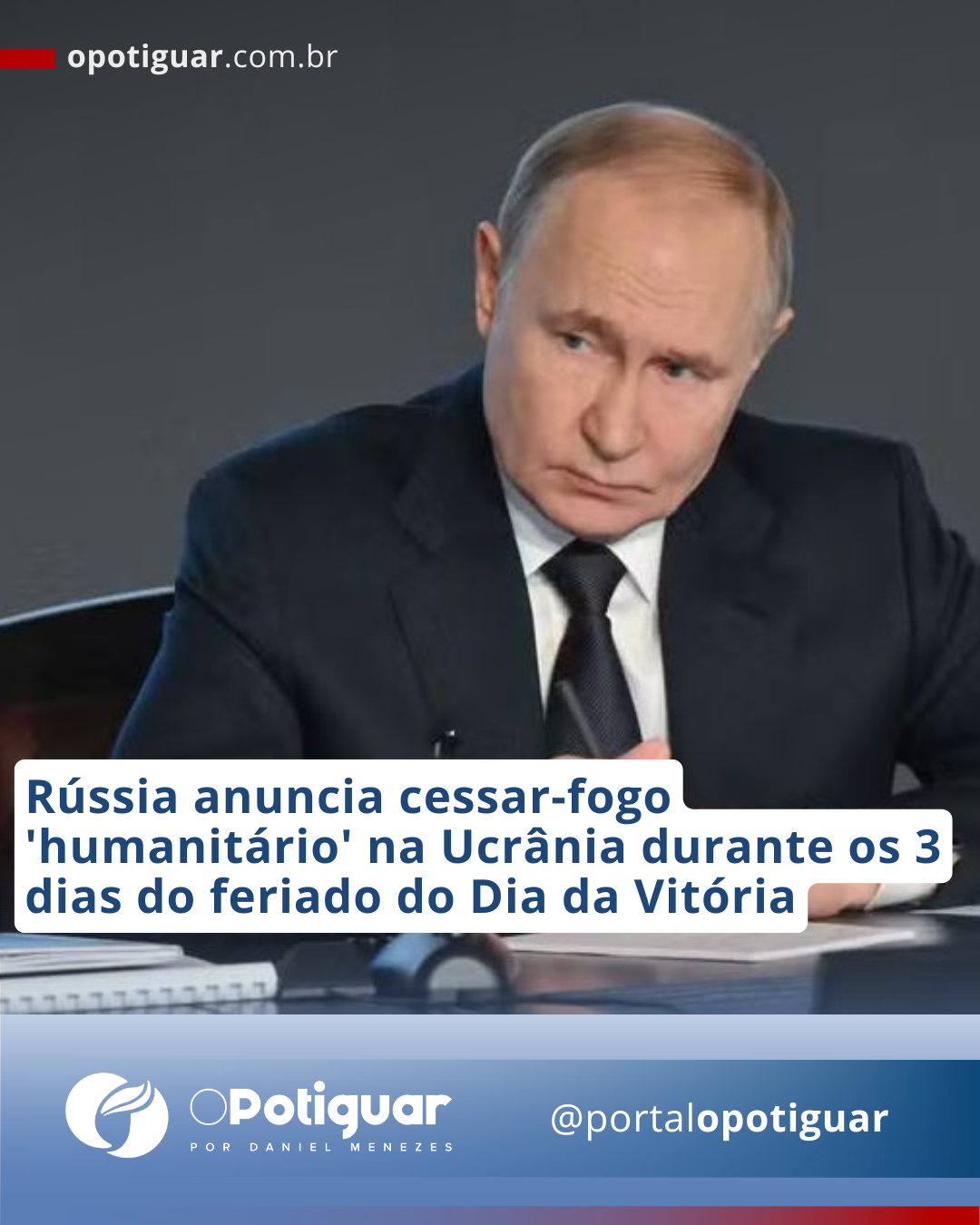 Do r7.com - O presidente russo, Vladimir Putin, anunciou uma trégua na Ucrânia de 8 a 10 de maio, período que marca o 80º aniversário da vitória da Rússia sobre a Alemanha nazista, mas alertou que Moscou responderá se Kiev violar o cessar-fogo.