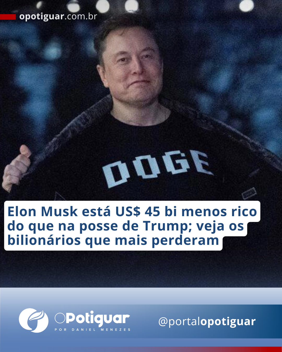 Do Estadão - Elon Musk está US$ 45 bilhões (R$ 254,7 bilhões) menos rico do que estava no dia da posse de Donald Trump como presidente dos EUA. Na terça-feira, 29, o segundo governo do republicano completou 100 dias, e Musk foi o bilionário americano que mais perdeu dinheiro no período, segundo levantamento da revista Forbes.