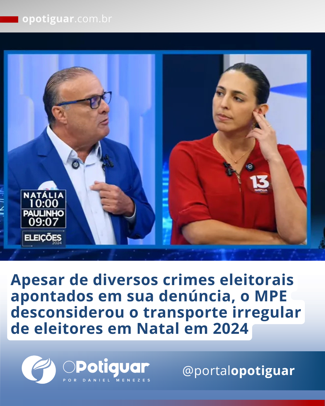 Apesar de extenso conteúdo fático e em várias direções a respeito da denúncia de abuso político e econômico nas eleições em Natal de 2024, em que o Ministério Público Eleitoral pediu a cassação e inelegibilidade de Paulinho Freire, Joana Guerra, Álvaro Dias e dois vereadores eleitos, a operação de transporte irregular de eleitores não entrou na manifestação do MPE.