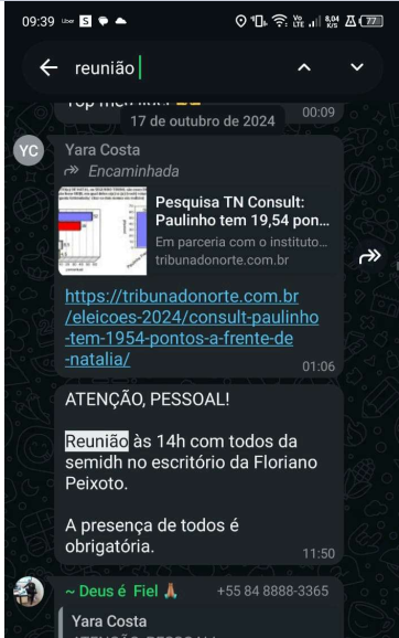 Na análise da evidência B7117, dados coletados em computador da Secretária Municipal de Trabalho e Assistência Social - SEMTAS de Natal/RN, foram encontrados 3 (três) arquivo de possível relevância para a investigação, tratando-se de prováveis agendas de reuniões/eventos em alusão às campanhas de PAULINHO FREIRE e JOANNA GUERRA, bem como de diversos vereadores, conclui a justiça eleitoral em aceitação pela justiça eleitoral.