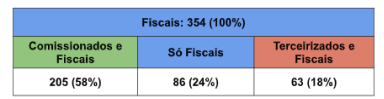 a.1) 205 (duzentos e cincos) fiscais possuíram ou possuem vínculos comissionados junto à entidade pública do Município de Natal/RN; b.2) 63 (sessenta e três) possuem ou possuíram vínculos com as empresas contratadas pelo Município de Natal/RN (LOCATUDO, CLAREAR, TERCEIRIZE SERVIÇOS, ZELO, SOL); b.3) 86 (oitenta e seis) fiscais não exercem ou exerceram cargos comissionados com o Município de Natal, ou fizeram parte dos quadros de funcionários das empresas contratadas supracitadas;