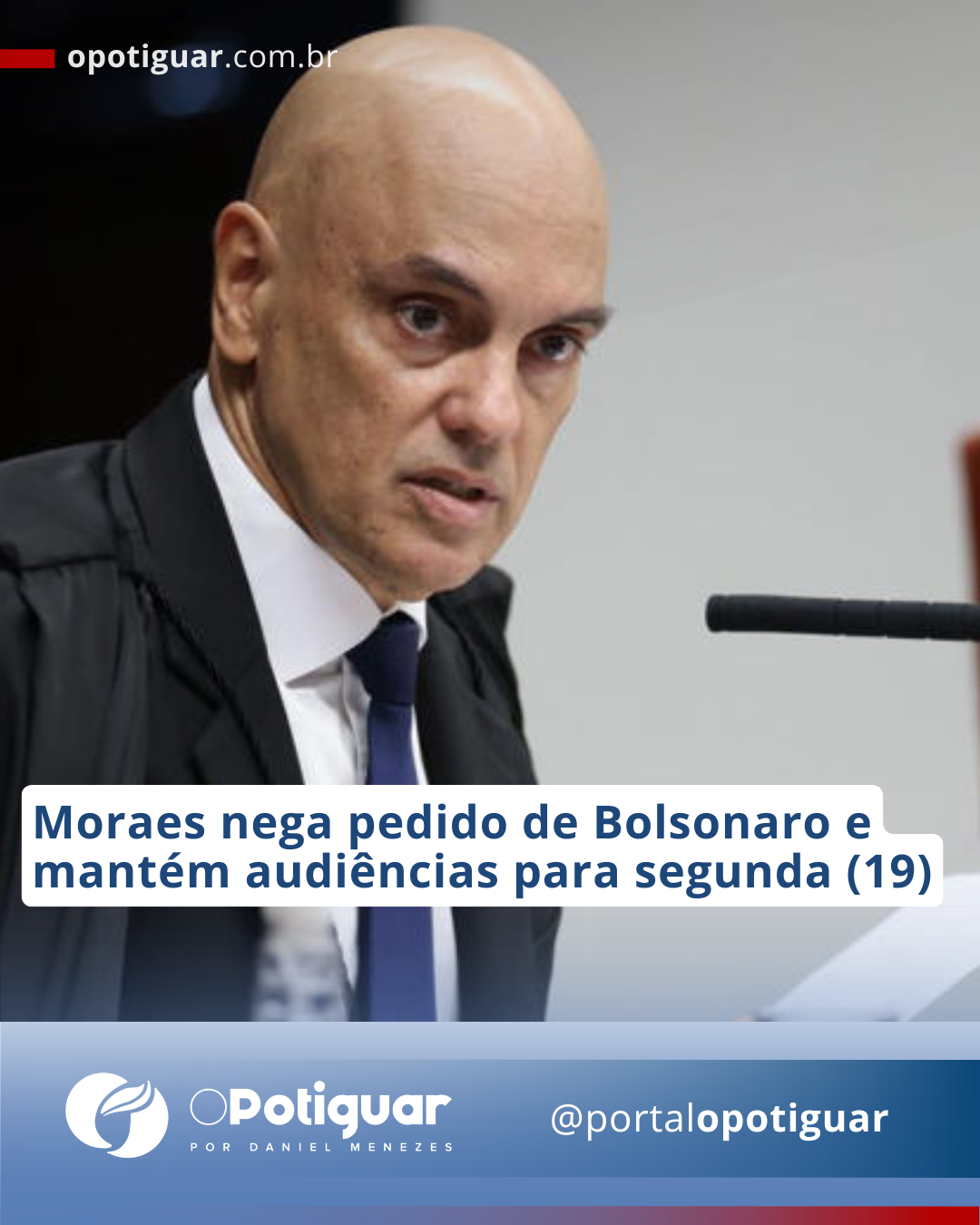 Moraes nega pedido de Bolsonaro e mantém audiências para segunda (19)