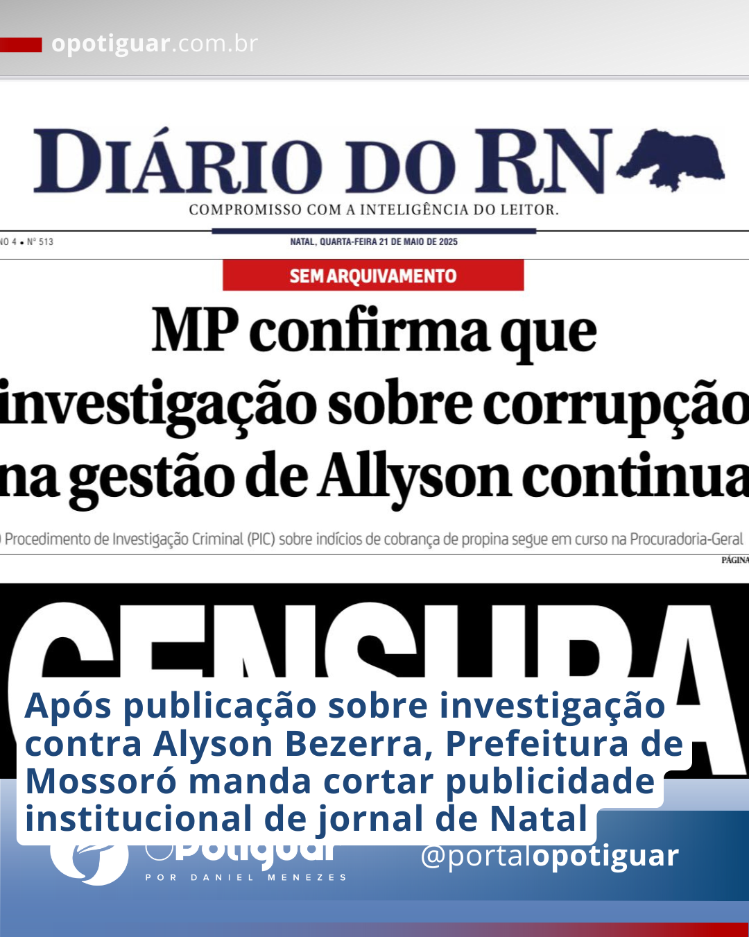 Após publicação sobre investigação contra a gestão Alyson Bezerra, Prefeitura de Mossoró manda cortar publicidade institucional de jornal de Natal