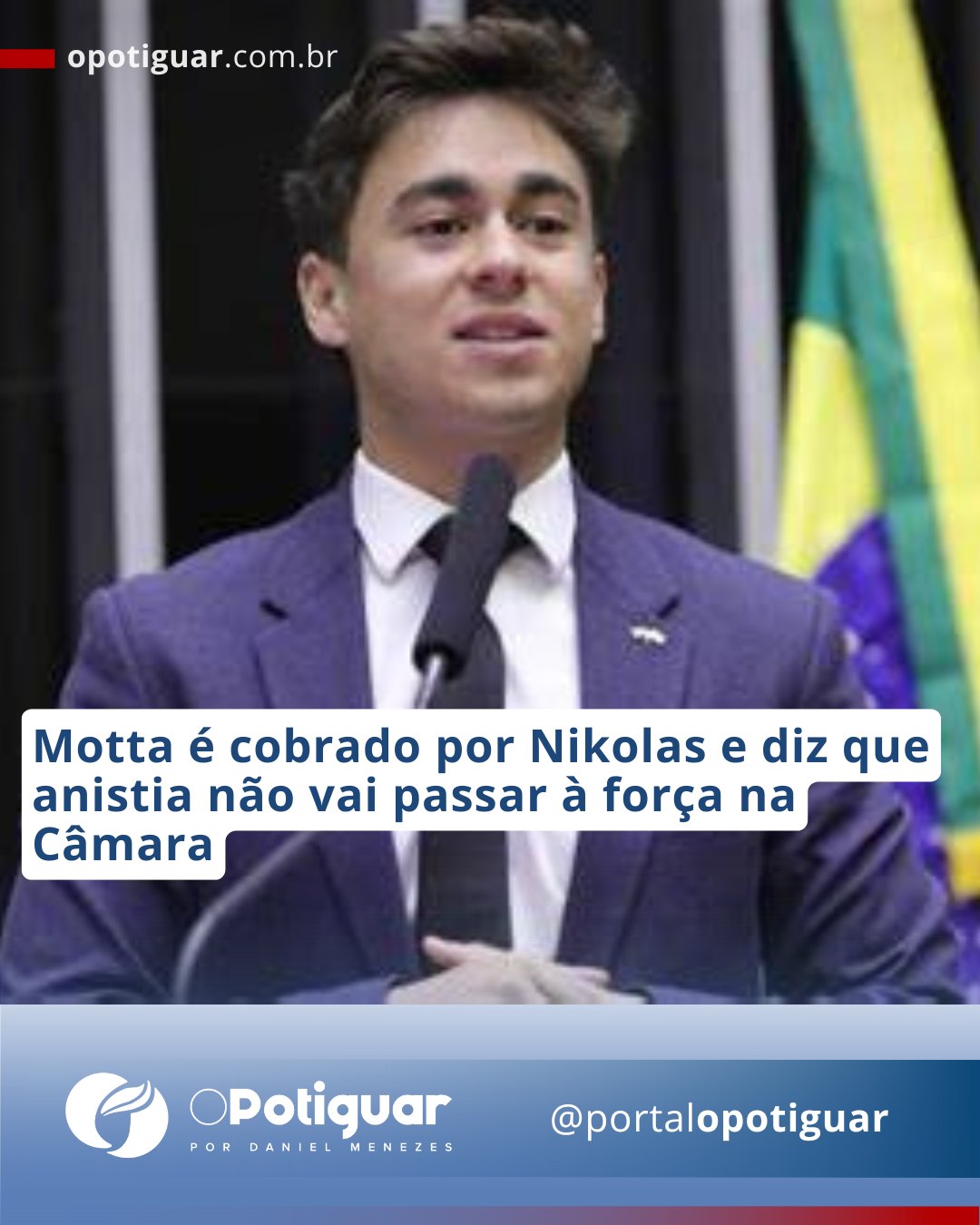 De acordo com pessoas que participaram da reunião, Nikolas pediu a Motta um posicionamento público sobre o tema, relembrando que na sala dele estiveram os seis filhos de um fugitivo do 8 de janeiro, há poucos meses.