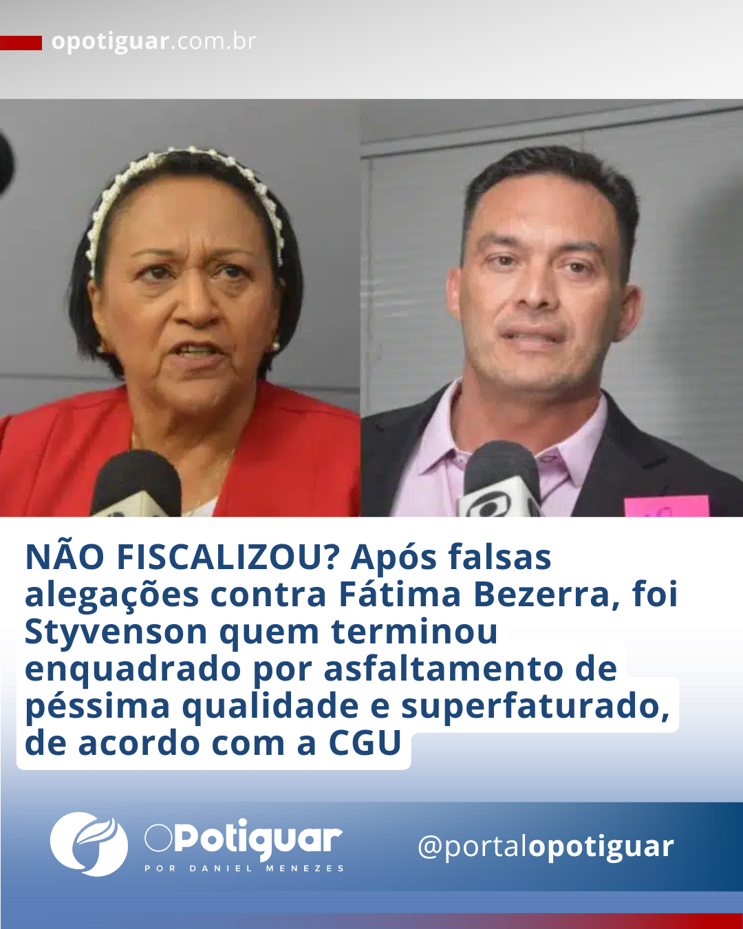 NÃO FISCALIZOU? Após falsas alegações contra Fátima Bezerra, foi Styvenson quem terminou enquadrado por asfaltamento de péssima qualidade e superfaturado, de acordo com a CGU