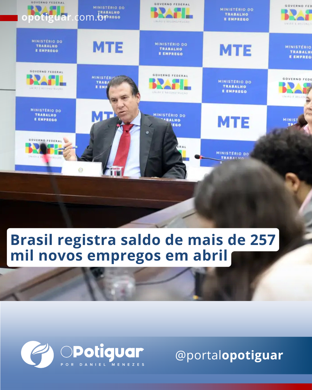 O Brasil fechou o mês de abril com saldo positivo de 257.528 empregos com carteira assinada. O balanço é do Novo Cadastro Geral de Empregados e Desempregados (Novo Caged) divulgado nesta quarta-feira (28) pelo Ministério do Trabalho e Emprego (MTE). Segundo a pasta, no acumulado do ano, o país gerou 922 mil novas vagas.