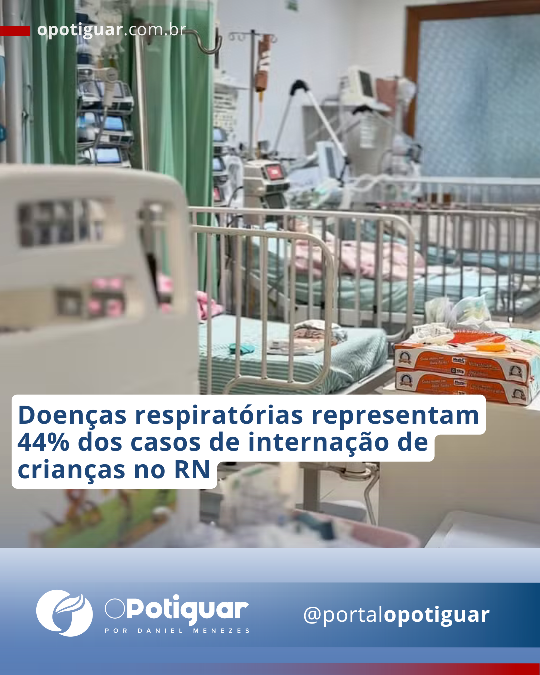 Do G1 - As doenças respiratórias representavam, nesta quarta-feira (28), 44% dos casos de internação de crianças e adolescentes em leitos pediátricos na rede pública de saúde do Rio Grande do Norte. Os dados foram repassados pela Secretaria de Estado da Saúde Pública (Sesap) a pedido do g1.