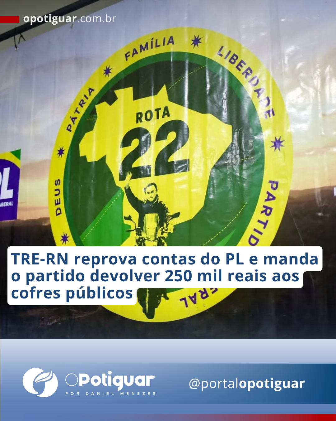 O Tribunal Regional Eleitoral do Rio Grande do Norte (TRE-RN) reprovou as contas do Partido Liberal (PL) relativas ao ano de 2022 e determinou à sigla devolver R$ 254,2 mil ao Tesouro Nacional, além de transferir R$ 141,4 mil para a aplicação em programas de promoção e difusão da participação política das mulheres.
