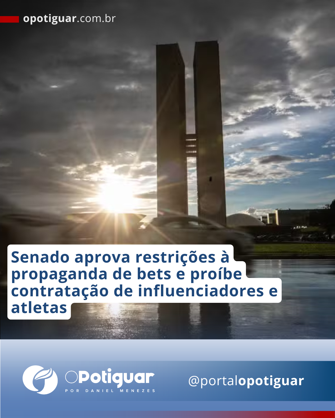 O Senado aprovou, nesta quarta-feira, o projeto de lei que estabelece novas regras para a publicidade de apostas on-line (bets). Entre as medidas aprovadas, estão a proibição do uso da imagem ou participação de atletas, artistas, comunicadores, influenciadores digitais e autoridades em peças publicitárias veiculadas em rádio, televisão, redes sociais ou demais meios digitais.