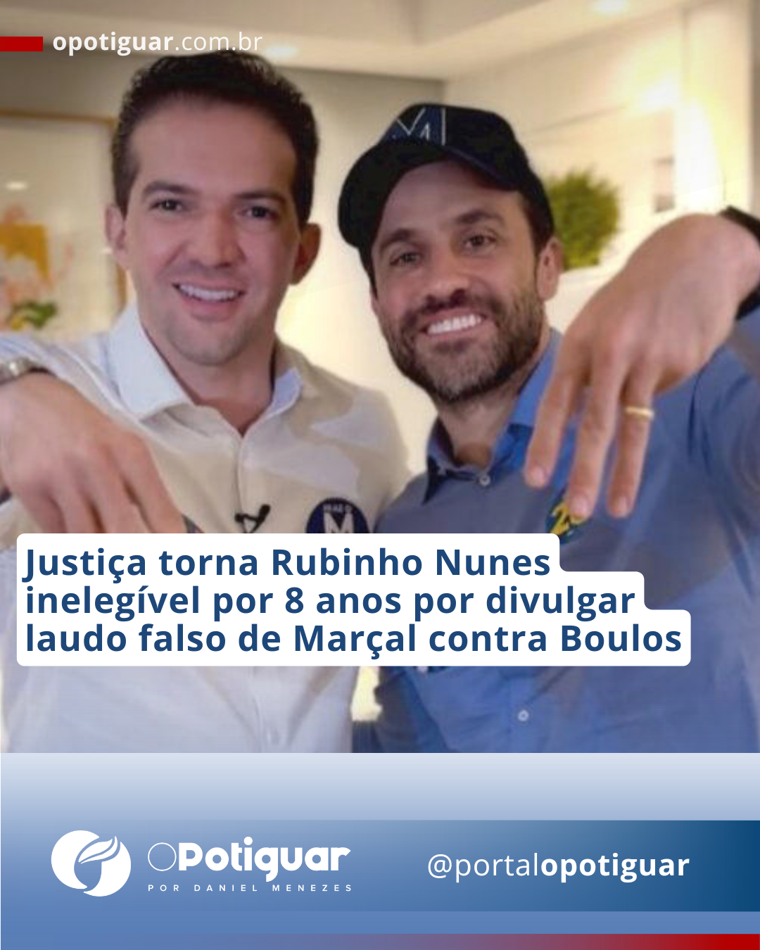 Do Estadão - A Justiça Eleitoral de São Paulo determinou a cassação do mandato e declarou a inelegibilidade por oito anos do vereador Rubinho Nunes (União) por ter compartilhado, durante a campanha à Prefeitura da capital paulista em 2024, um laudo médico falso publicado por Pablo Marçal (PRTB), que atribuía ao então candidato Guilherme Boulos (PSOL) um suposto tratamento por uso de drogas.