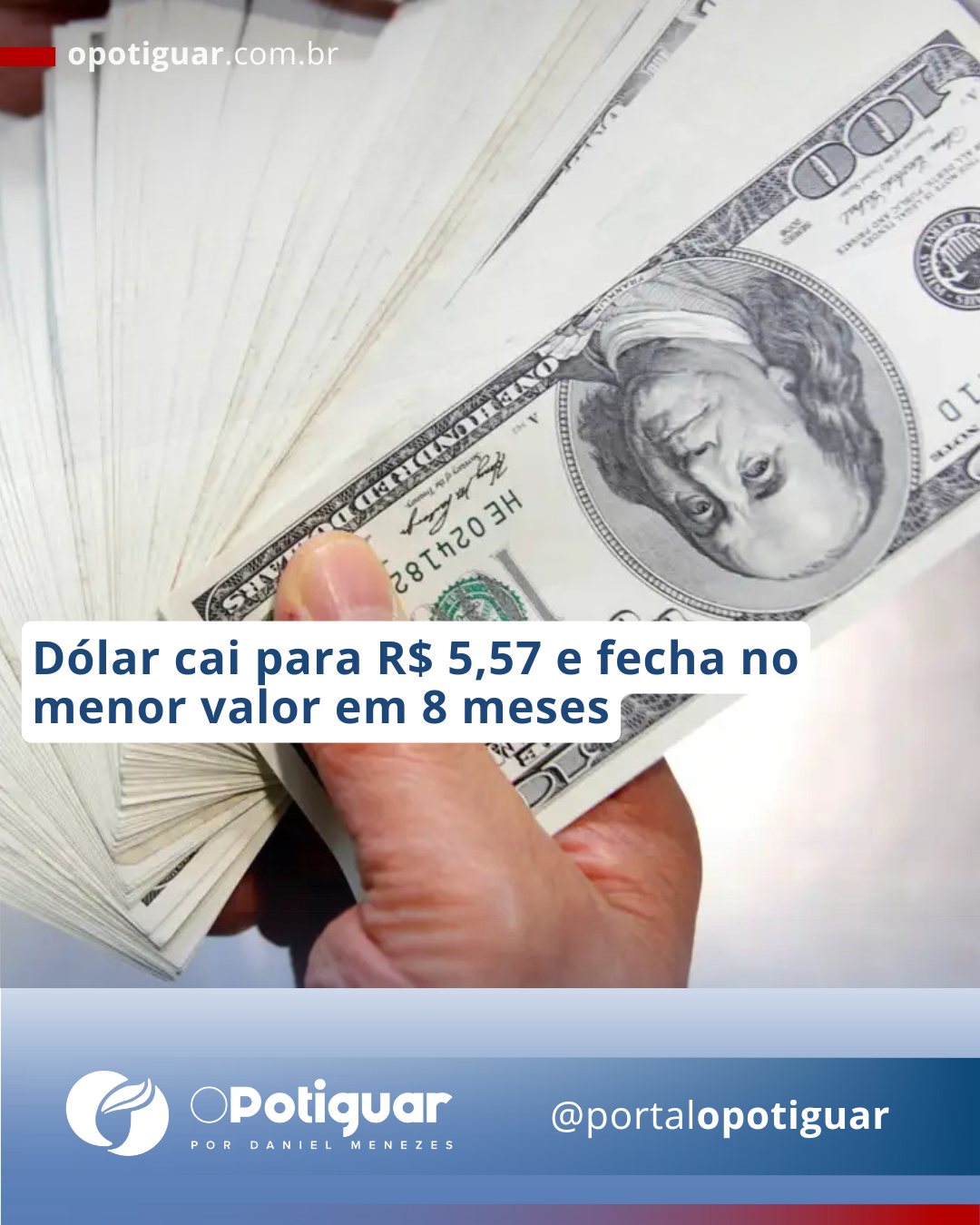 Dólar cai para R$ 5,57 e fecha no menor valor em 8 meses