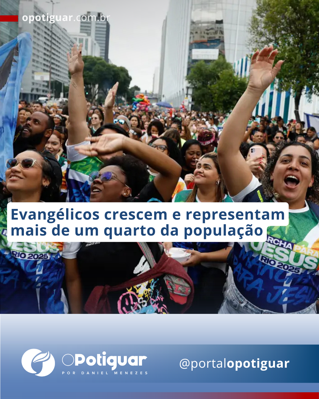 A proporção de evangélicos na população brasileira continua crescendo, segundo dados do Censo 2022, divulgados nesta sexta-feira (4) pelo Instituto Brasileiro de Geografia e Estatística (IBGE). O levantamento mostra que 26,9% dos brasileiros, ou seja, mais de um quarto da população, se identificavam como seguidores dessa denominação religiosa.