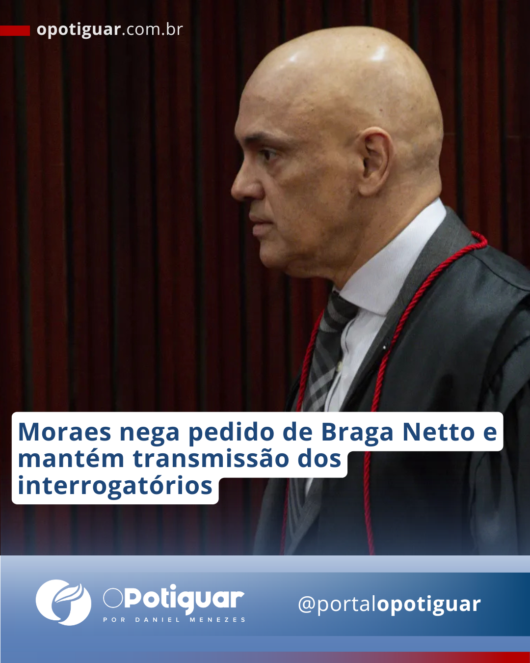 Da cNN - O ministro Alexandre de Moraes, do Supremo Tribunal Federal (STF), negou o pedido do ex-ministro Walter Braga Netto para que os interrogatórios dos réus na ação penal sobre o golpe de Estado não fossem transmitidos ao vivo.