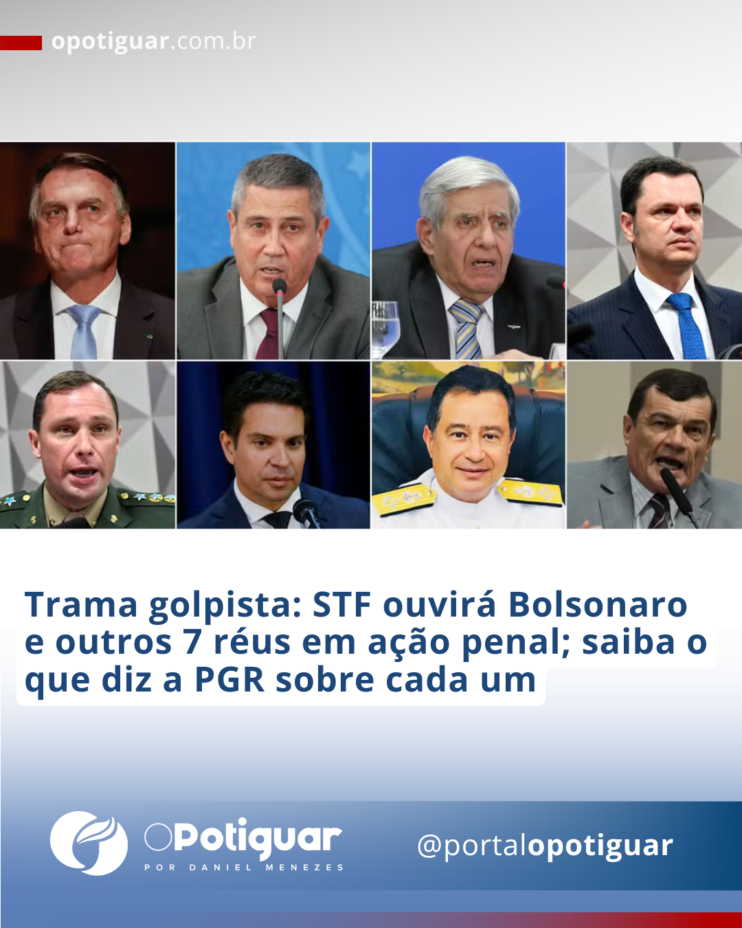 Os outros sete réus serão interrogados em ordem alfabética: Alexandre Ramagem, Almir Garnier, Anderson Torres, Augusto Heleno, Jair Bolsonaro, Paulo Sérgio Nogueira e Walter Braga Netto.