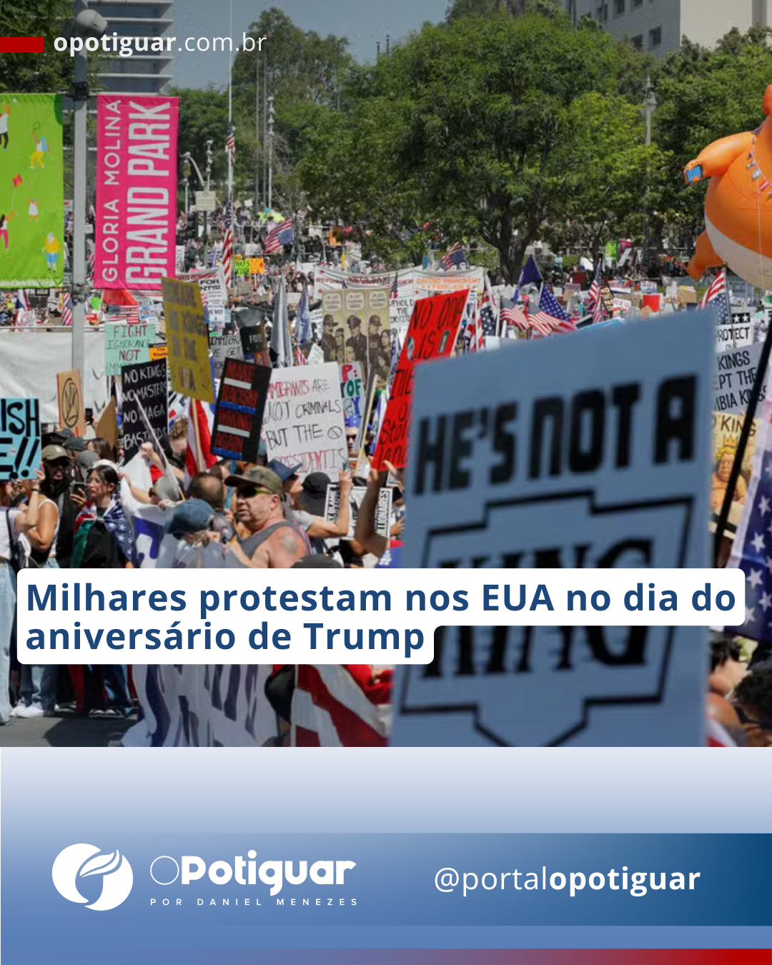 Do G1 - Manifestantes foram às ruas em cidades americanas durante protestos contra o governo de Donald Trump neste sábado (14). O movimento, chamado de ‘No Kings Day’, ou ‘Dia Sem Reis’, coincide com o aniversário de 79 anos do presidente americano e também com uma parada militar organizada por ele em Washington DC, capital do país.