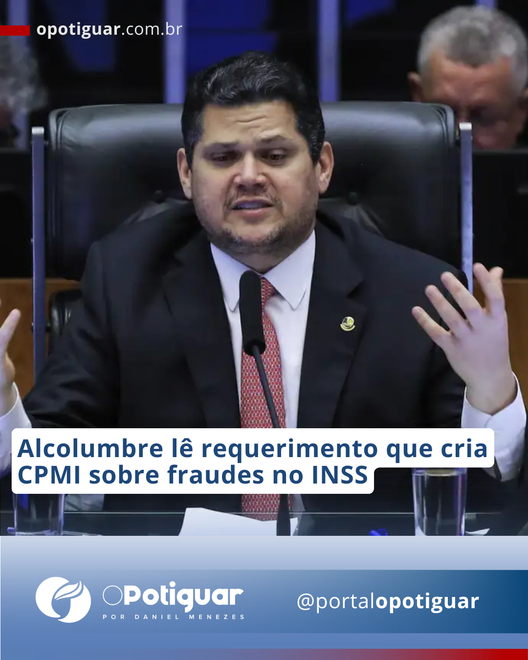 O presidente do Congresso Nacional, senador Davi Alcolumbre (União-AP), leu, nesta terça-feira (17), o requerimento para instalação de uma Comissão Parlamentar Mista de Inquérito (CMPI) sobre as fraudes nos descontos de aposentadorias do Instituto Nacional do Seguro Social (INSS).