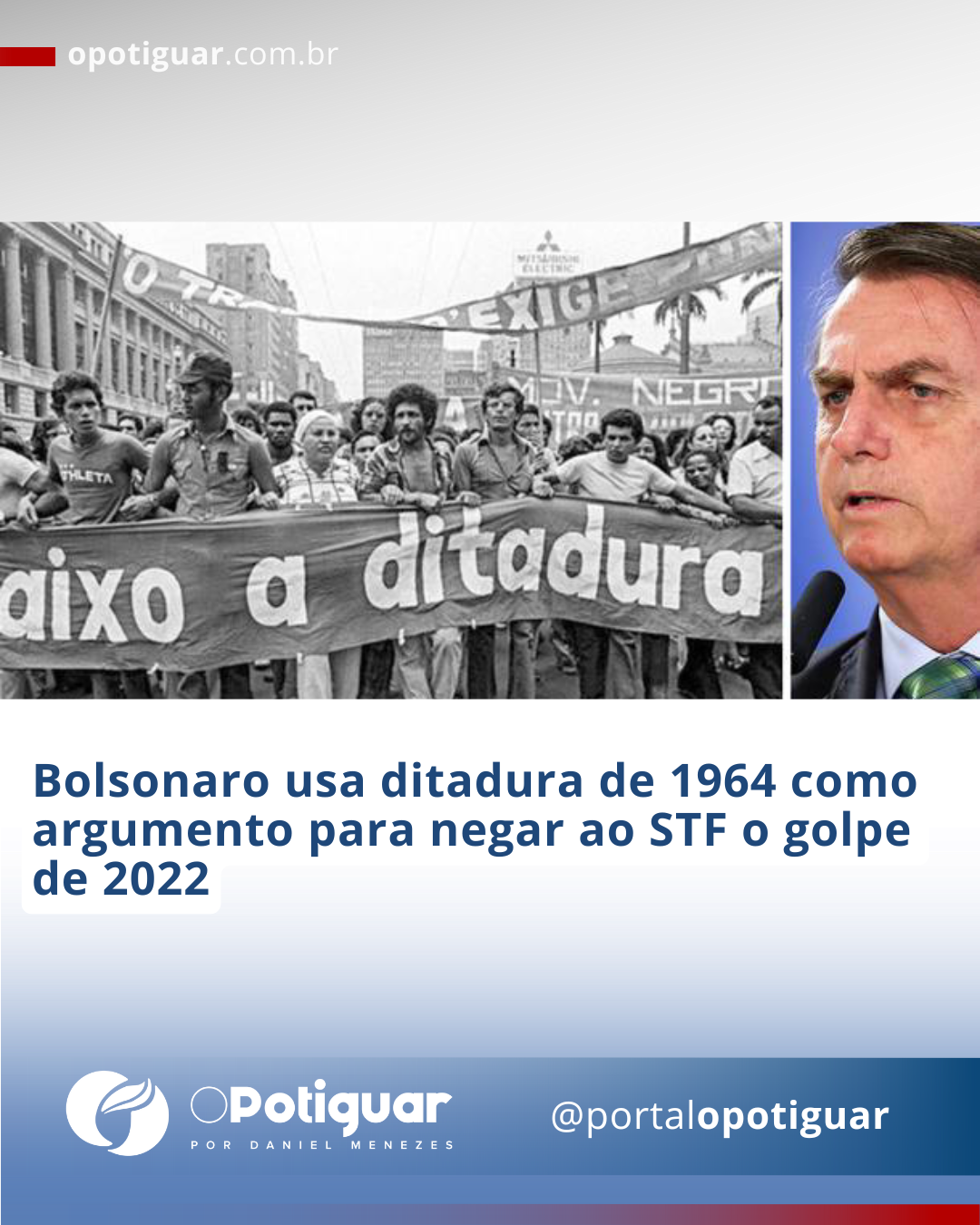 Durante depoimento ao ministro Alexandre de Moraes, do Supremo Tribunal Federal, no inquérito que investiga a tentativa de golpe após as eleições de 2022, o ex-presidente Jair Bolsonaro (PL) utilizou a ditadura militar de 1964 como argumento para negar ter liderado qualquer articulação golpista. A informação foi revelada em reportagem publicada pela Folha de S.Paulo. Bolsonaro afirmou que, diferentemente do que ocorreu naquele período, não havia apoio suficiente da sociedade para sustentar uma ruptura institucional em 2022.