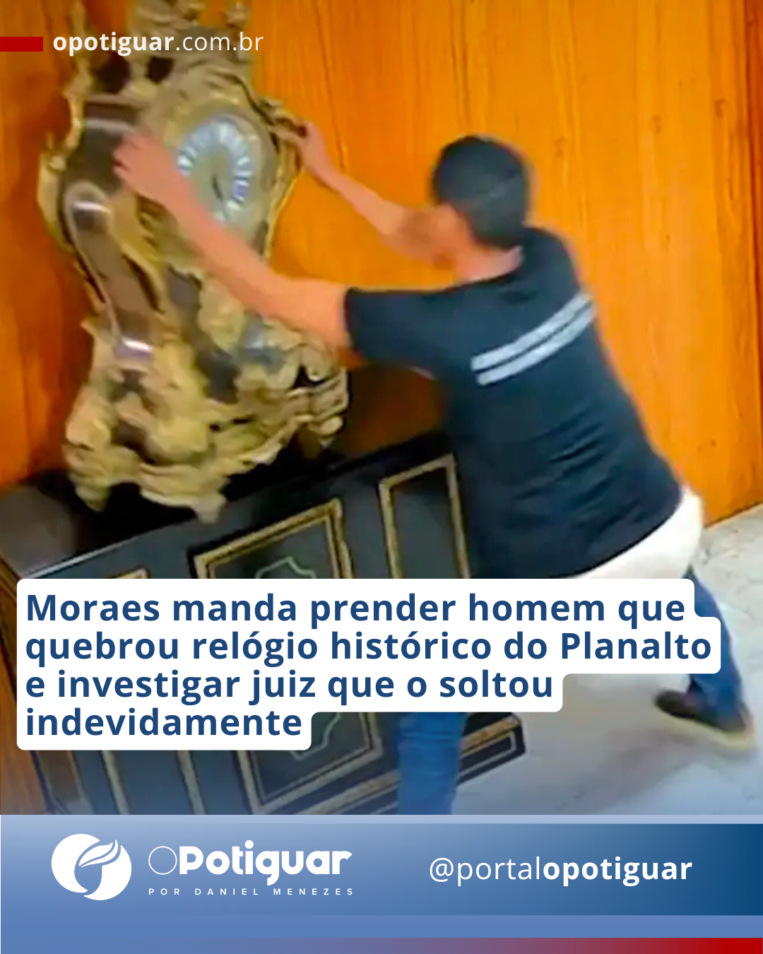Moraes manda prender homem que quebrou relógio histórico do Planalto e investigar juiz que o soltou indevidamente