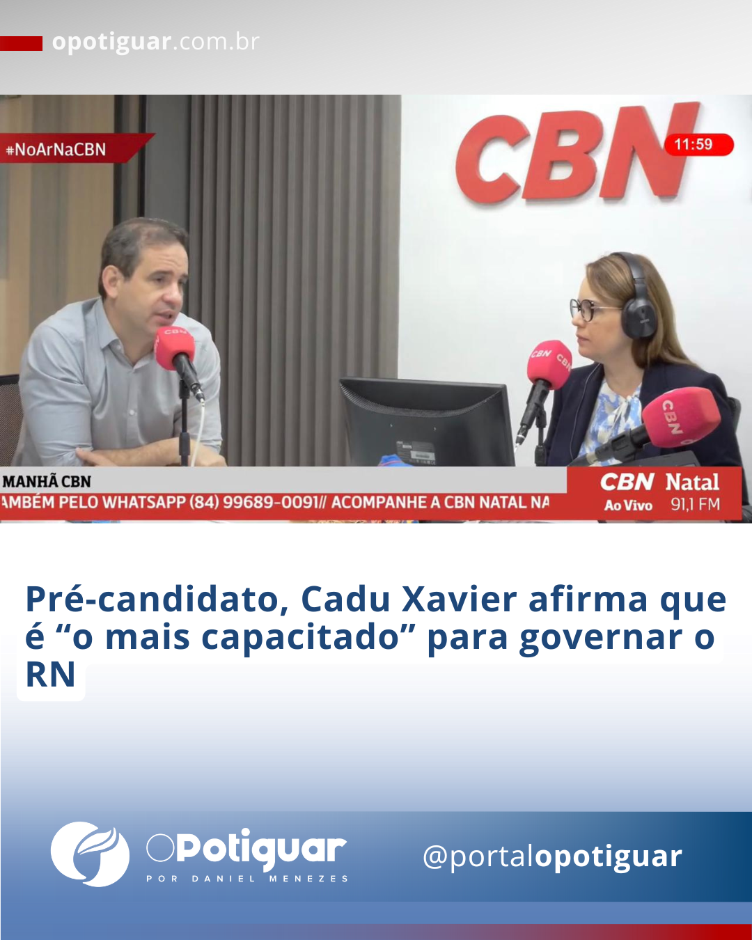 O atual secretário da Fazenda do Rio Grande do Norte, Cadu Xavier (PT), afirmou que se considera “a pessoa mais capacitada” para governar o Estado a partir de 2026. Em entrevista à rádio CBN, o auditor fiscal com 20 anos de carreira garantiu que não sonhava com a possibilidade, mas que, diante dos desafios enfrentados na gestão pública, sente-se pronto para a missão.