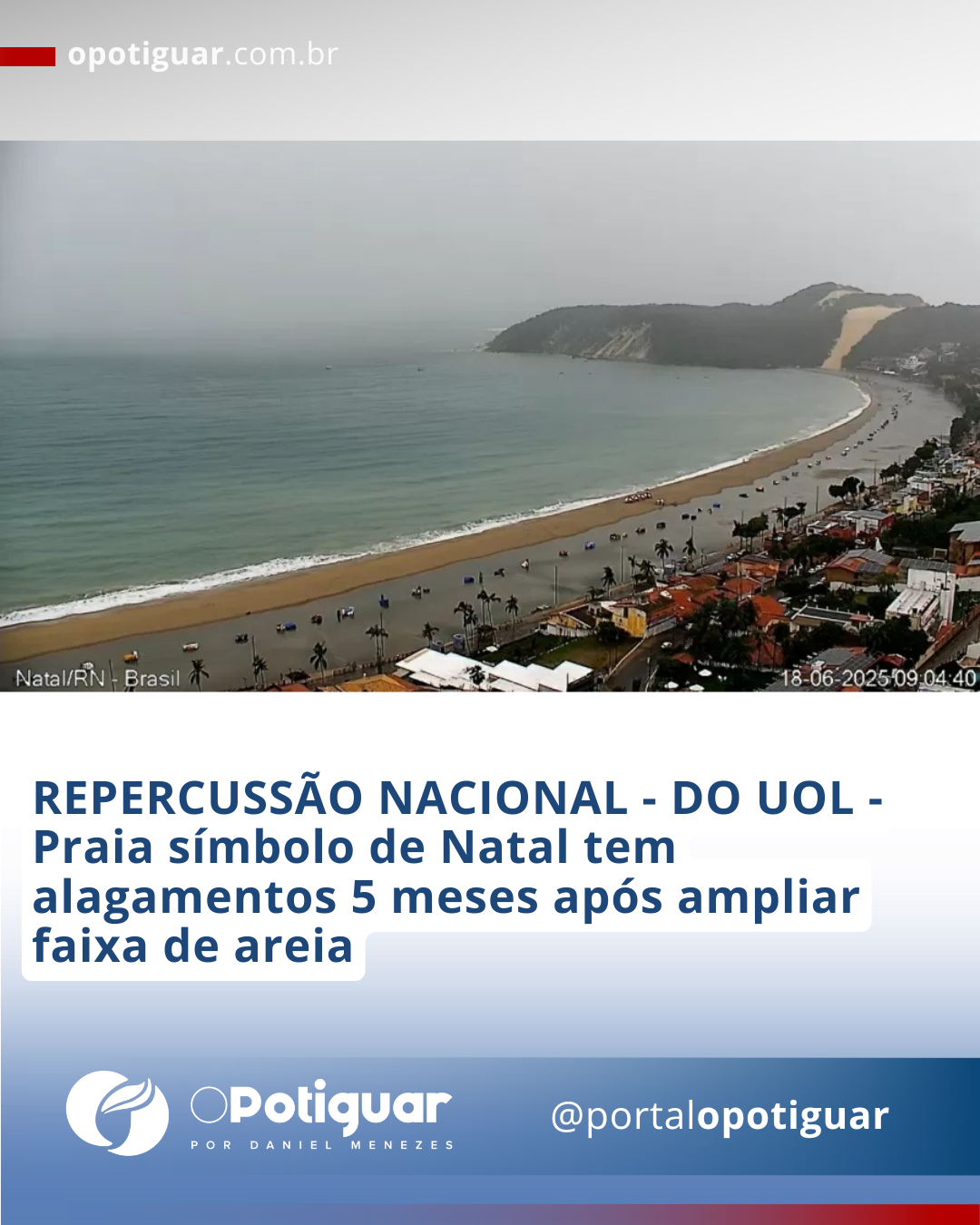 REPERCUSSÃO NACIONAL - DO UOL - Praia símbolo de Natal tem alagamentos 5 meses após ampliar faixa de areia