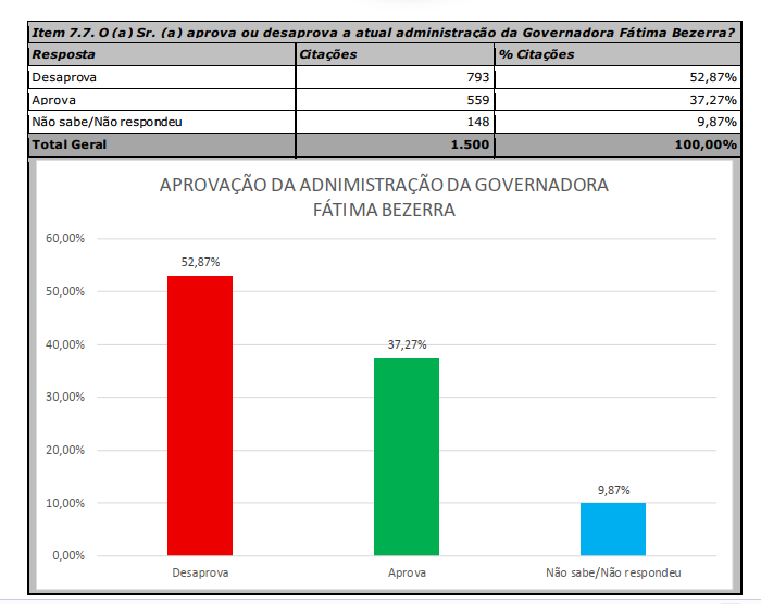 94FM/INSTITUTO SETA - Fátima é aprovada por 37,27% dos potiguares; 52,87% reprovam