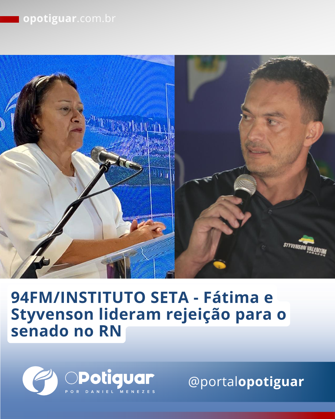 94FM/INSTITUTO SETA - Fátima e Styvenson lideram rejeição para o senado no RN