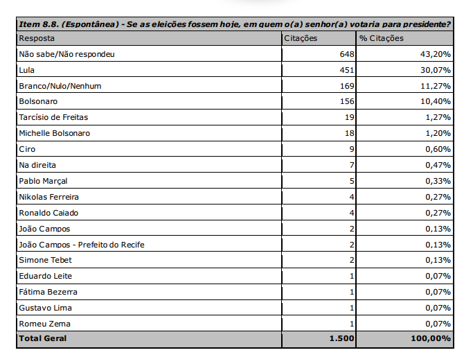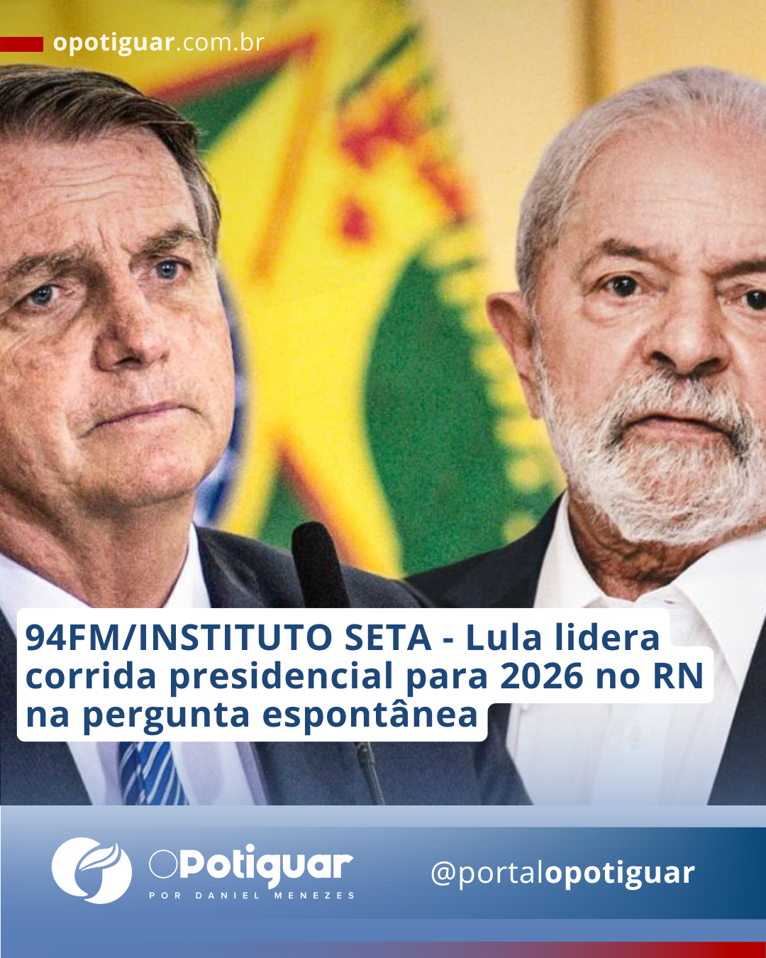 94FM/INSTITUTO SETA - Lula lidera corrida presidencial para 2026 no RN na pergunta espontânea