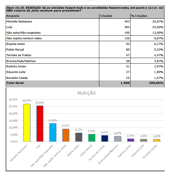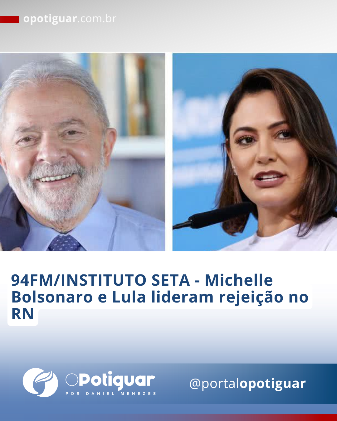 94FM/INSTITUTO SETA - Michelle Bolsonaro e Lula lideram rejeição no RN