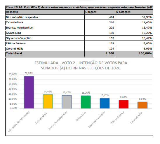 Veja resultado em cenário estimulado para o Senado no RN no Segundo Voto