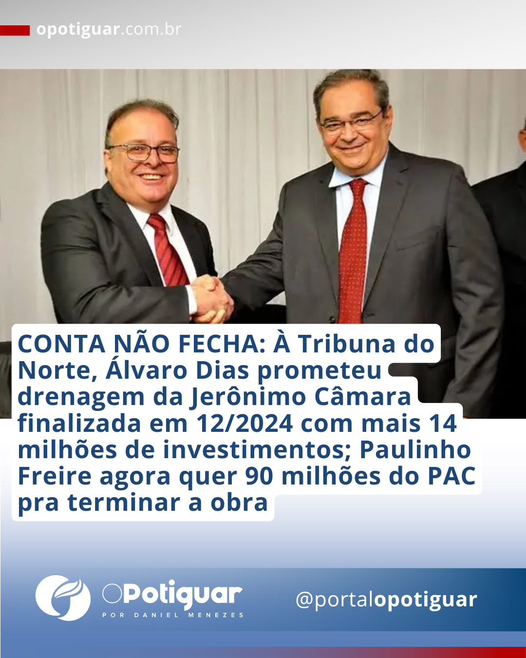 CONTA NÃO FECHA: À Tribuna do Norte, Álvaro Dias prometeu drenagem da Jerônimo Câmara finalizada em 12/2024 com mais 14 milhões de investimentos; Paulinho Freire agora quer 90 milhões do PAC pra terminar a obra