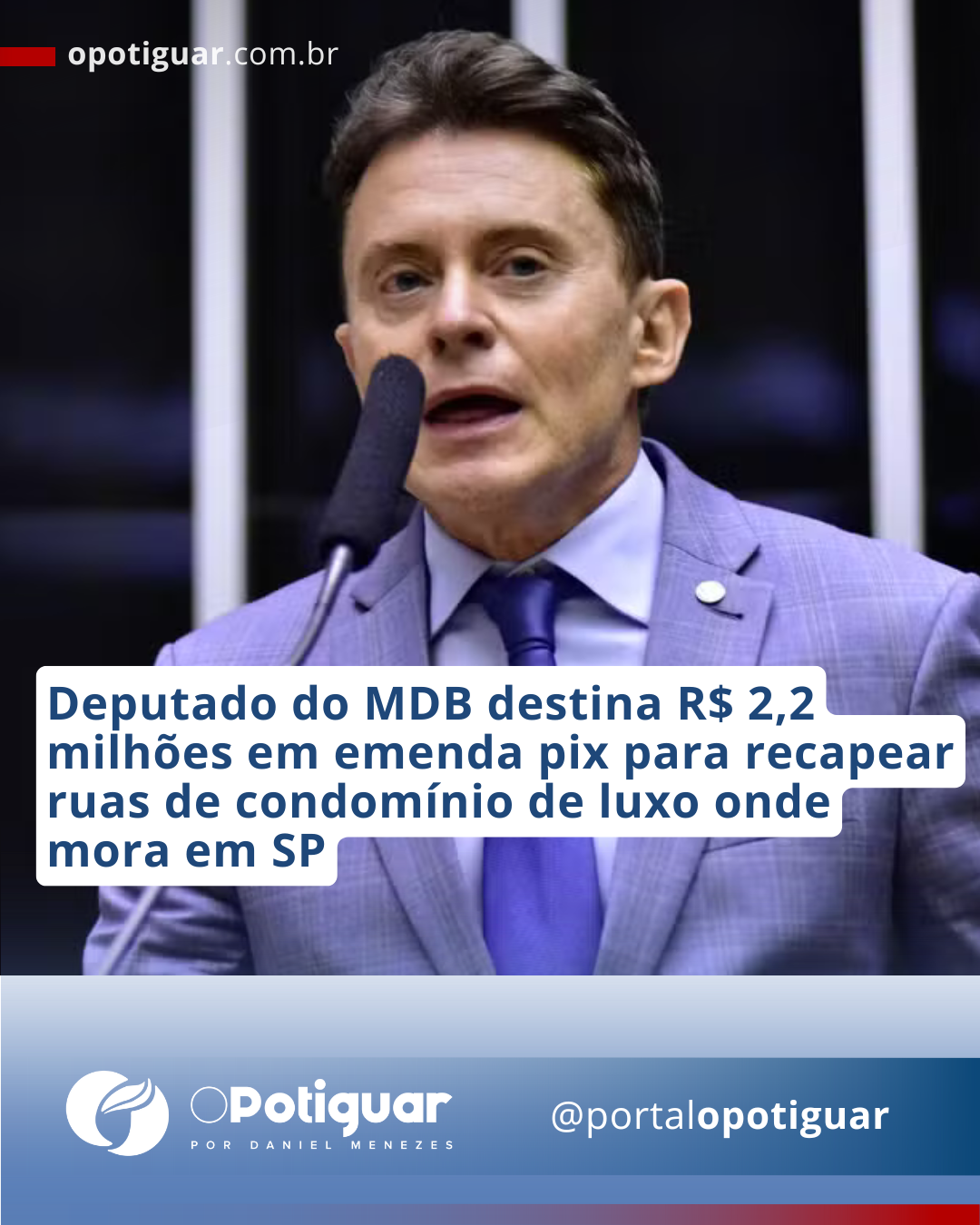 Deputado do MDB destina R$ 2,2 milhões em emenda pix para recapear ruas de condomínio de luxo onde mora em SP