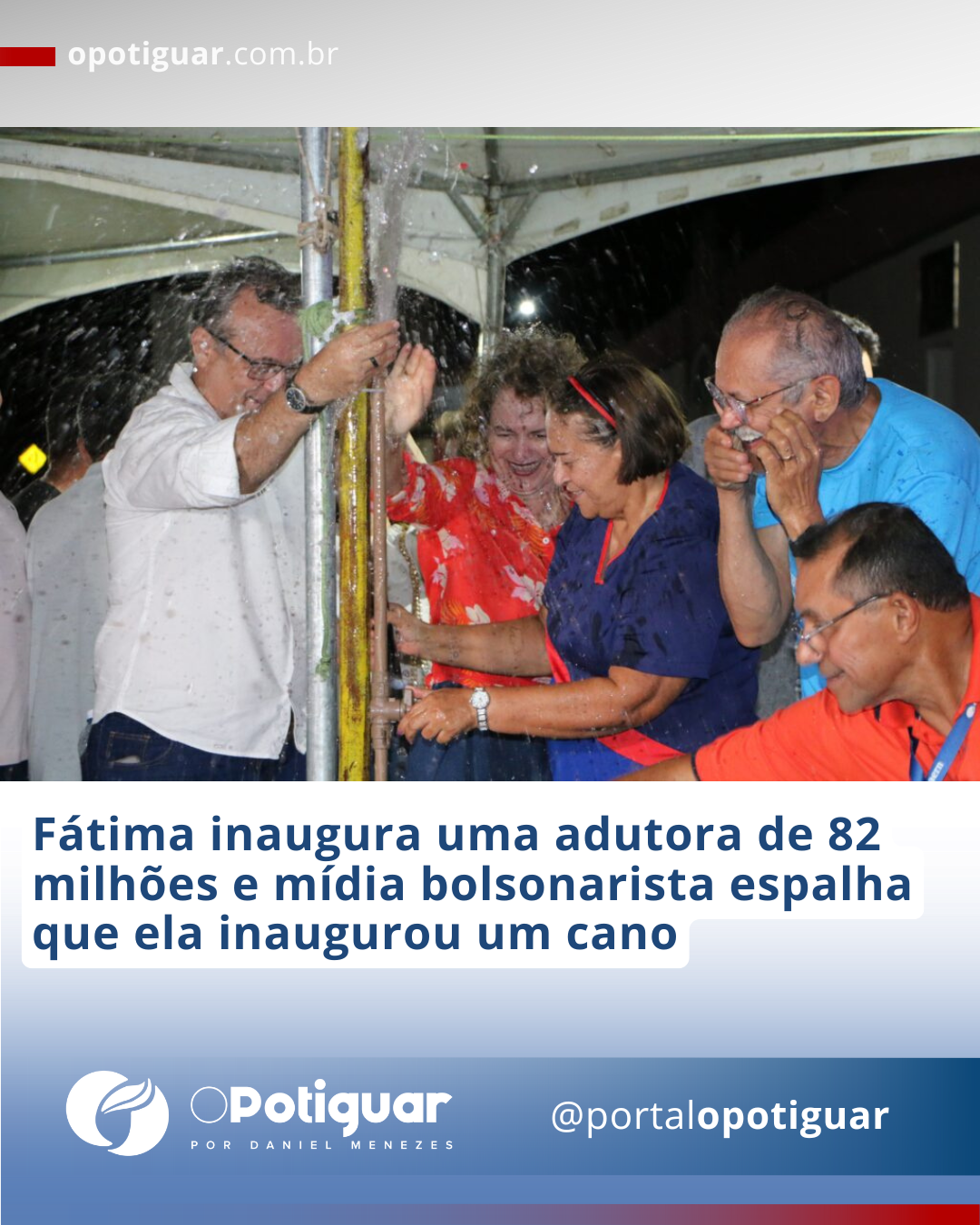 Fátima inaugura uma adutora de 82 milhões e mídia bolsonarista espalha que ela inaugurou um cano