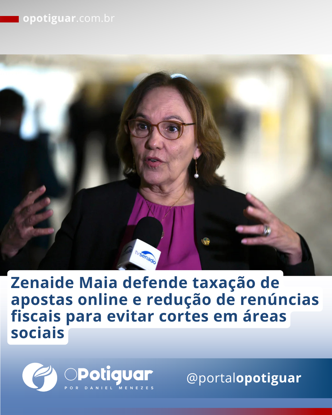 Em discurso publicado em suas redes sociais, a senadora Zenaide Maia (PSD) criticou a política de ajuste fiscal que prioriza cortes em áreas sociais em vez de tributar setores lucrativos. “Meu recado é um só: defendo a taxação das bets e a redução das renúncias fiscais bilionárias dadas a empresas graúdas”, afirmou a parlamentar, referindo-se às plataformas de apostas online e aos benefícios tributários concedidos a grandes corporações.