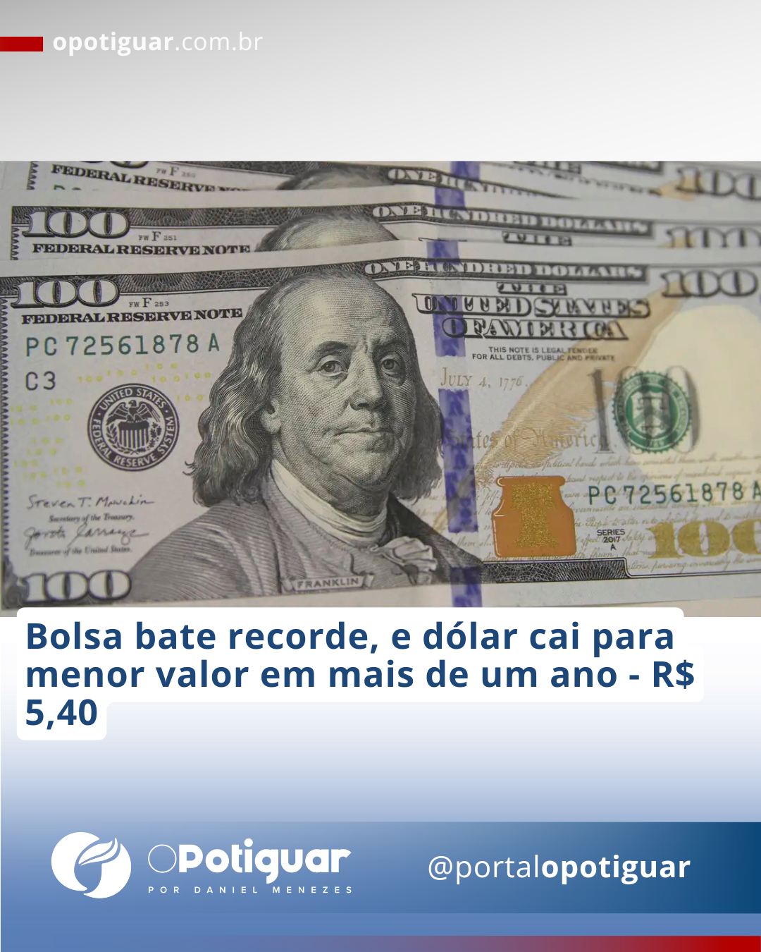 Bolsa bate recorde, e dólar cai para menor valor em mais de um ano - R$ 5,40