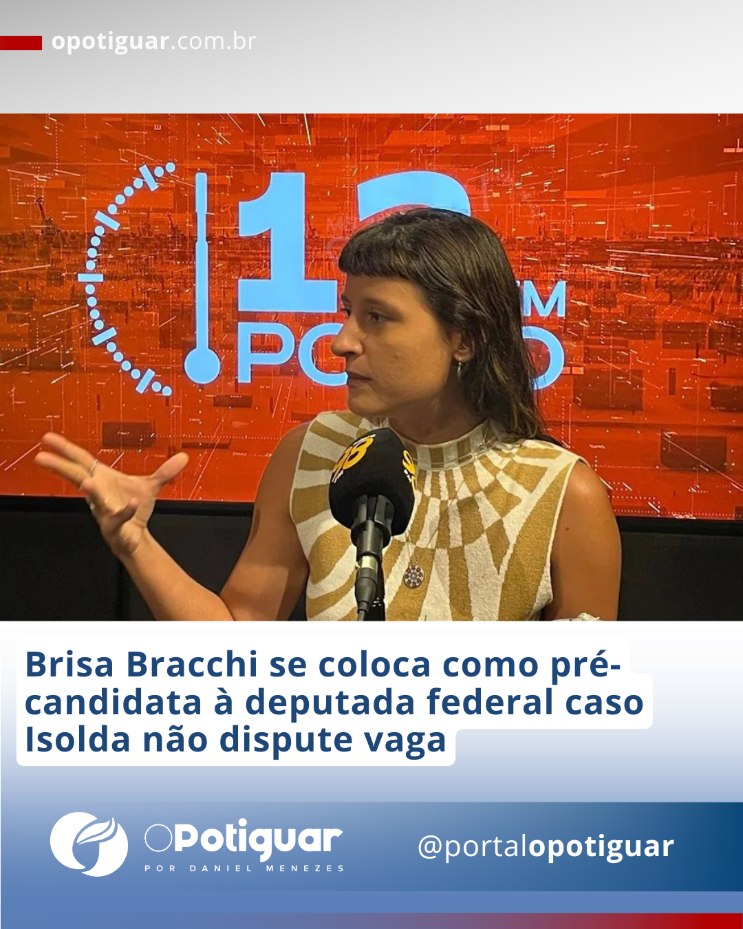 Da 98fm - A vereadora de Natal Brisa Bracchi (PT) afirmou, em entrevista ao programa 12 em Ponto, da 98 FM Natal, nesta sexta-feira (4), que está pronta para disputar uma vaga de deputada federal nas eleições de 2026, caso a deputada estadual Isolda Dantas (PT) opte por tentar a reeleição na Assembleia Legislativa do Rio Grande do Norte. Brisa também disse acreditar que o PT terá força para eleger três representantes à Câmara dos Deputados.