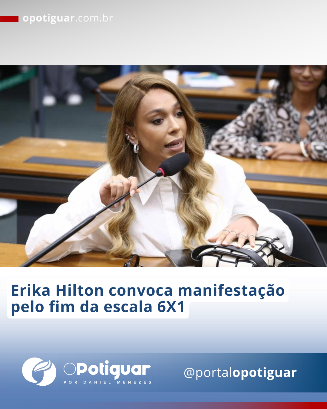 A deputada federal Erika Hilton (Psol-SP) divulgou nas redes sociai, no sábado (5), convocação para manifestação na quinta-feira (10) pelo fim da escala de trabalho 6X1. O evento vai acontecer nos arredores do Museu de Arte de São Paulo (Masp), às 18 horas. Segundo a parlamentar, o povo irá às ruas pela redução da jornada de trabalho, pela redução dos impostos para os pobres e classe média e pela taxação dos super ricos.