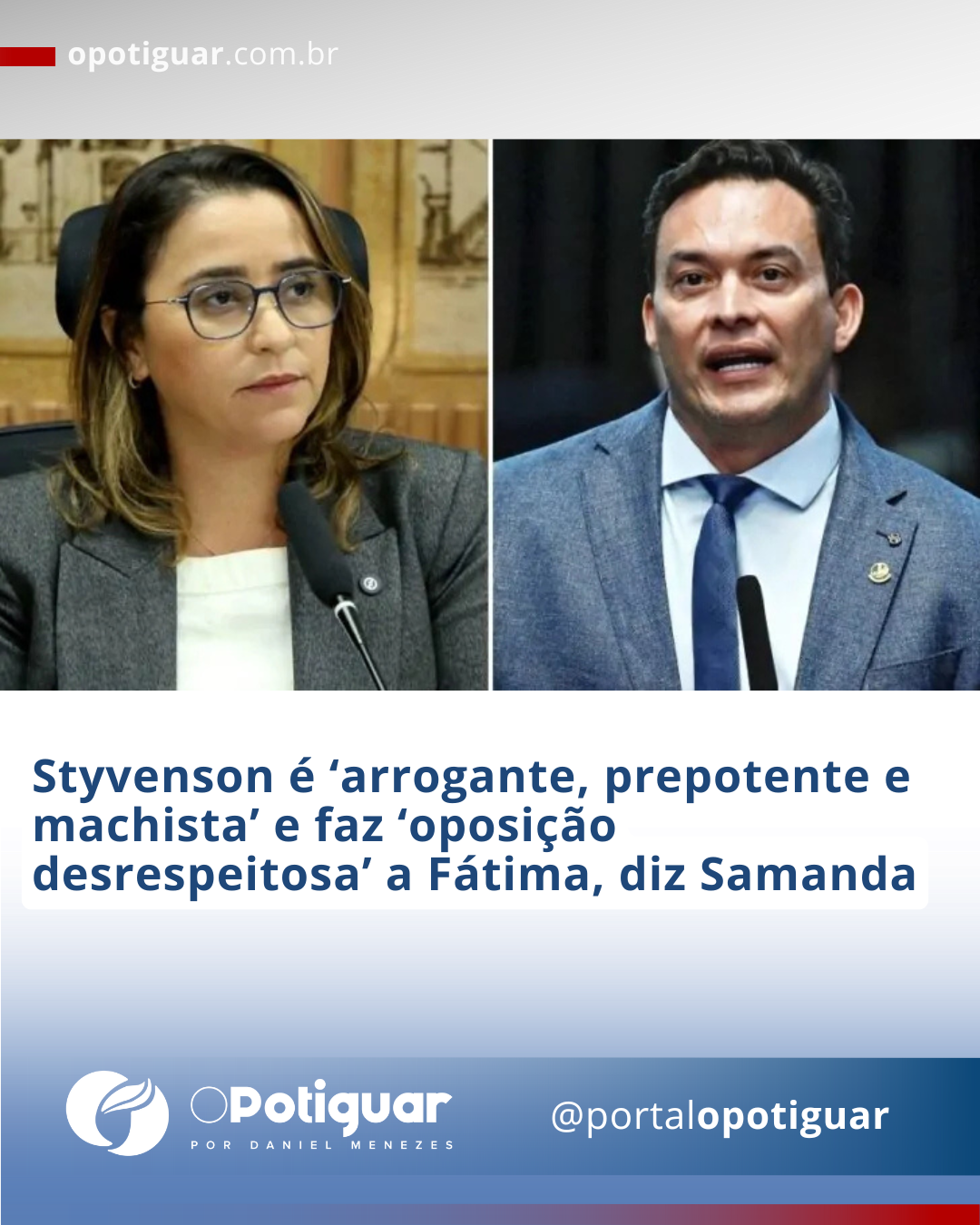 “Ele é misógino, machista, arrogante, prepotente. Ele diz que traz recursos para o Rio Grande do Norte. Traz por causa do presidente Lula. Se tirar o presidente Lula da vida dele, ele vira só um senador arrogante, prepotente, machista, misógino. Não vai ter outra qualidade para ele. É uma oposição desrespeitosa que ele faz à governadora”, afirmou Samanda, em entrevista à 98 FM.