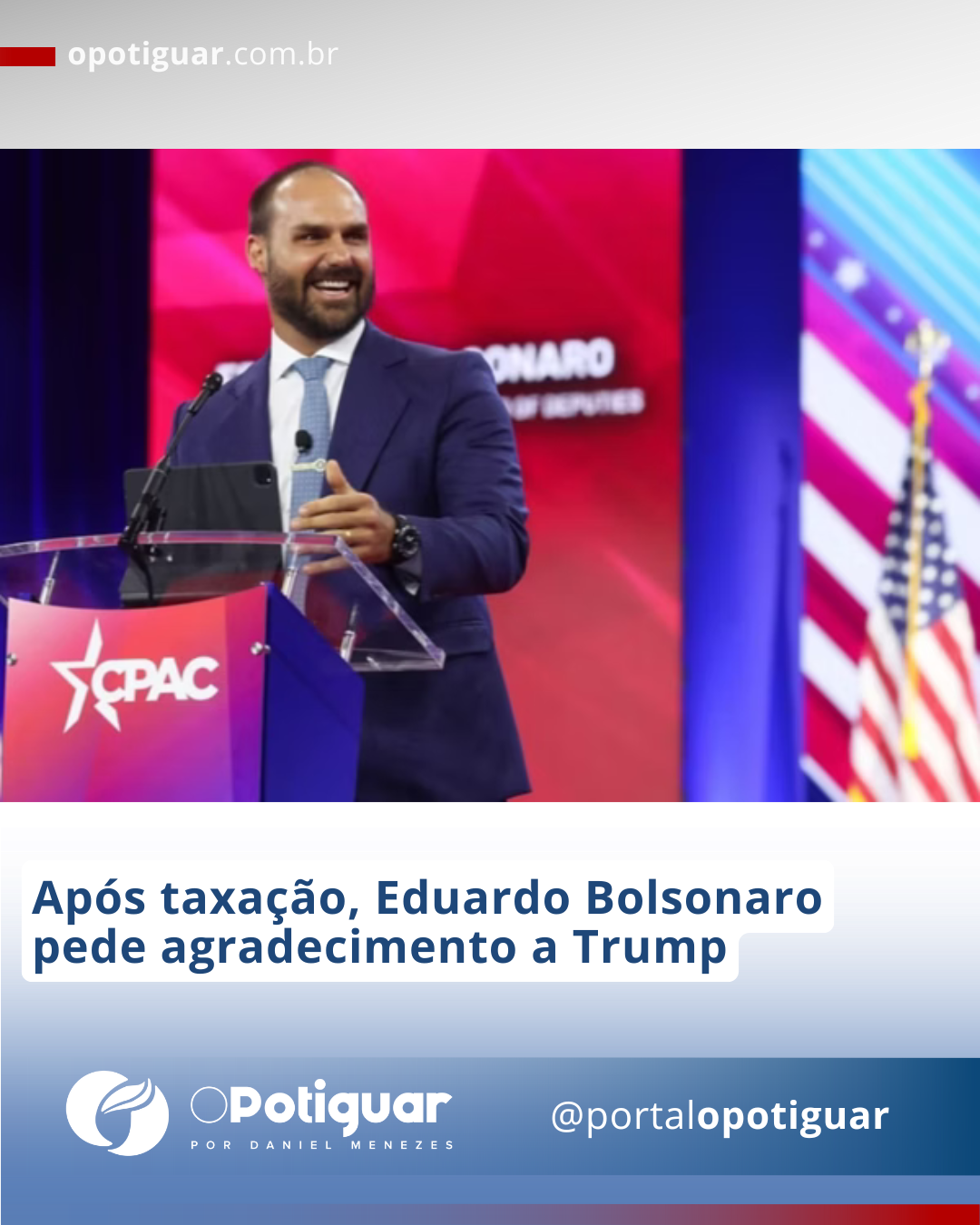 Do Metrópoles - O deputado federal licenciado Eduardo Bolsonaro (PL-SP) usou as redes socais para pedir que os brasileiros agradeçam ao presidente dos Estados Unidos Donald Trump. O pedido acontece após o líder norte-americano anunciar a taxação de 50% das exportações de produtos do Brasil para os Estados Unidos.