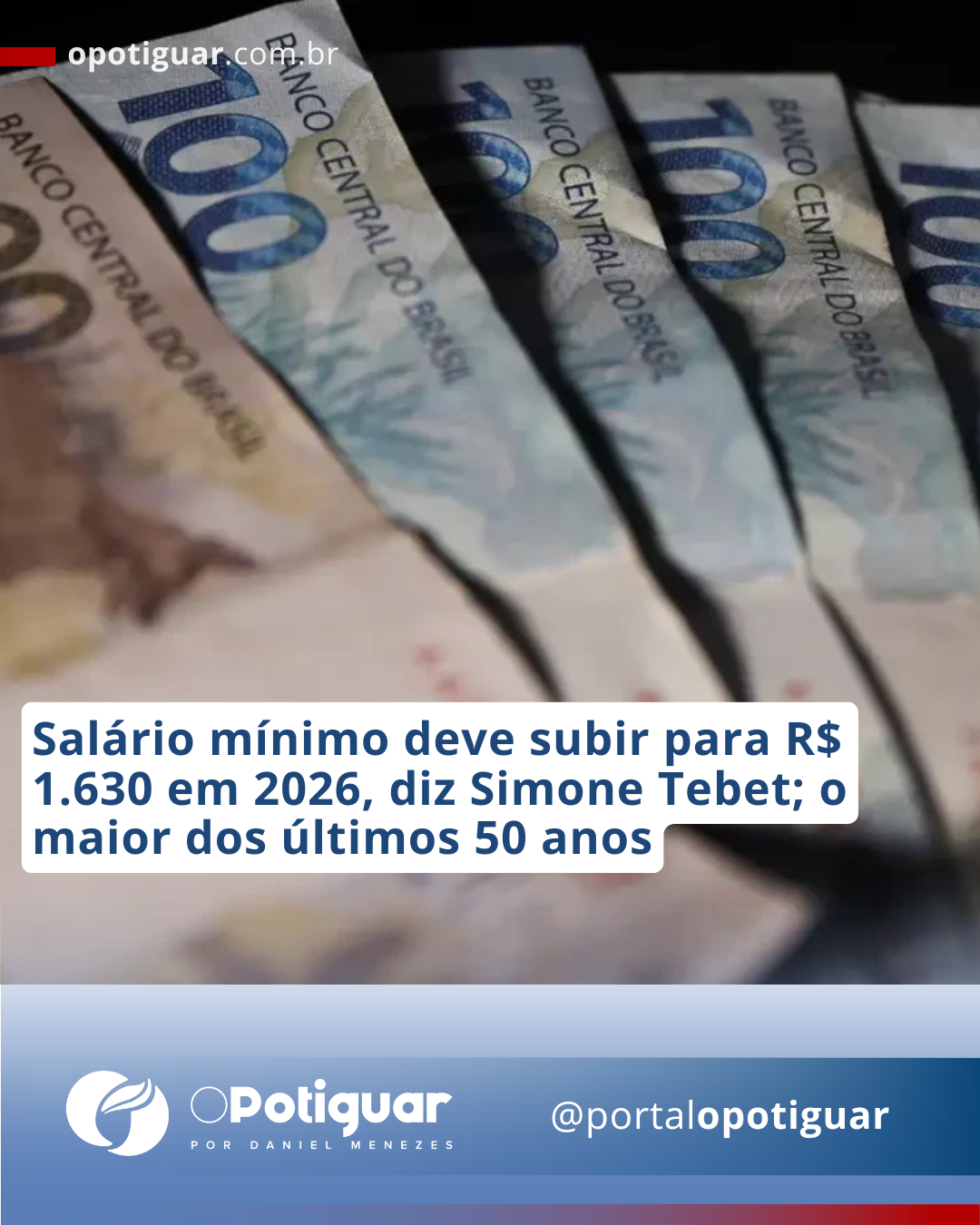 O governo federal projeta um salário mínimo de R$ 1.630 para o ano de 2026. A informação foi confirmada nesta terça-feira, 8 de julho, pela ministra do Planejamento e Orçamento, Simone Tebet, durante audiência na Comissão Mista de Orçamento, no Senado Federal.