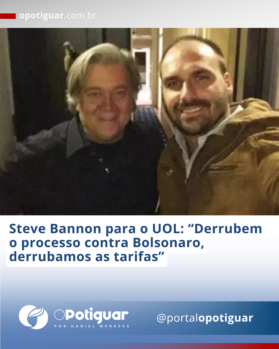 De acordo com o estrategista, os brasileiros podem esperar "mais ações" do governo americano. "Derrubem o caso, derrubamos as tarifas", disse Bannon em entrevista à coluna de Mariana Sanches do Portal UOL.