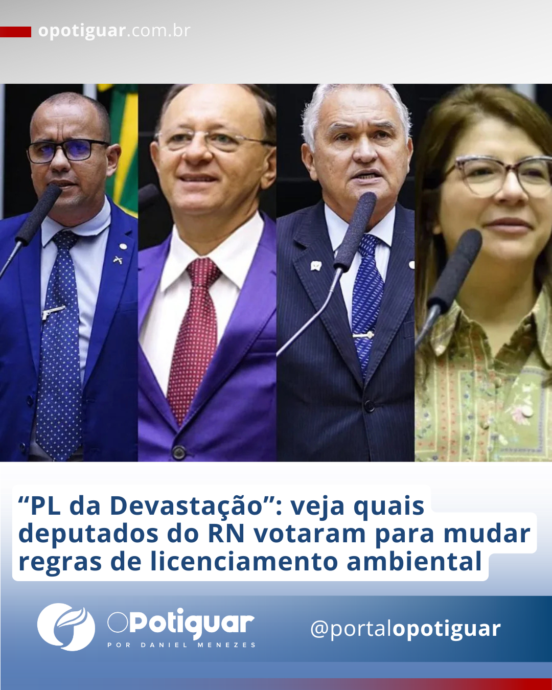 “PL da Devastação”: veja quais deputados do RN votaram para mudar regras de licenciamento ambiental