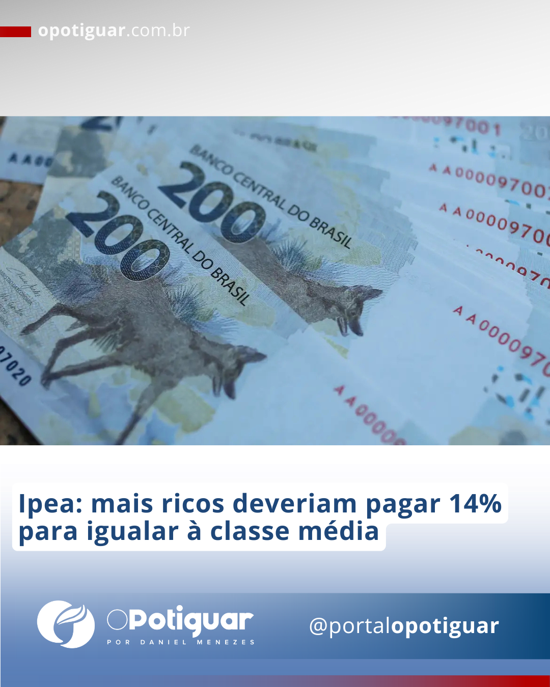 Ipea: mais ricos deveriam pagar 14% para igualar à classe média