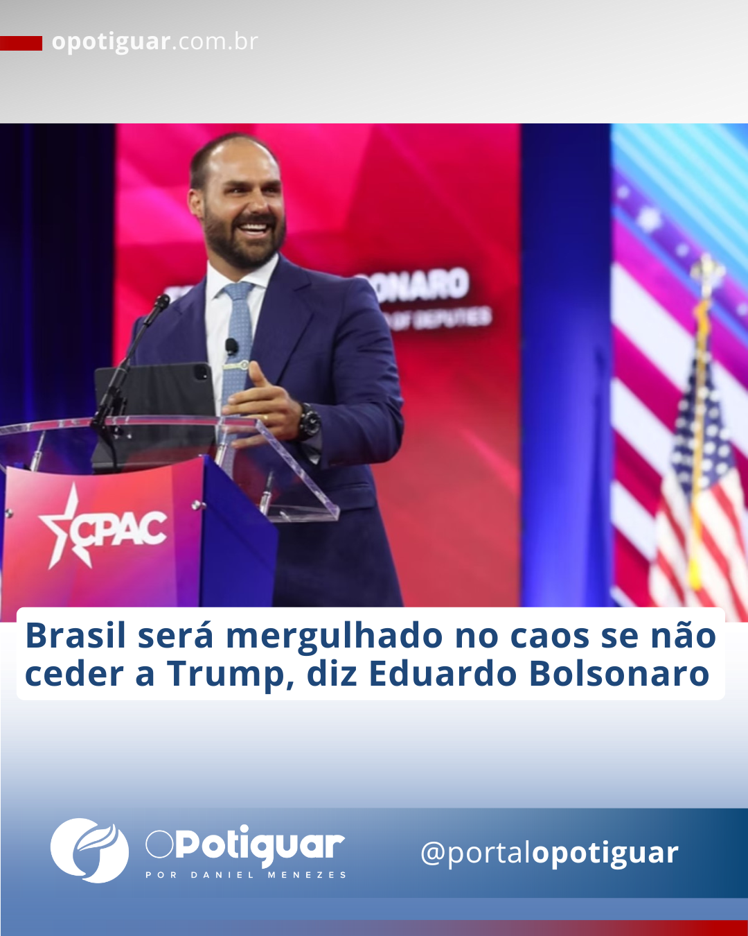 CNN - O deputado licenciado Eduardo Bolsonaro (PL-SP) afirmou à CNN, nesta sexta-feira (18), que “o Brasil será mergulhado no caos” se não ceder ao presidente dos Estados Unidos, Donald Trump, após o anúncio de 50% em tarifas.