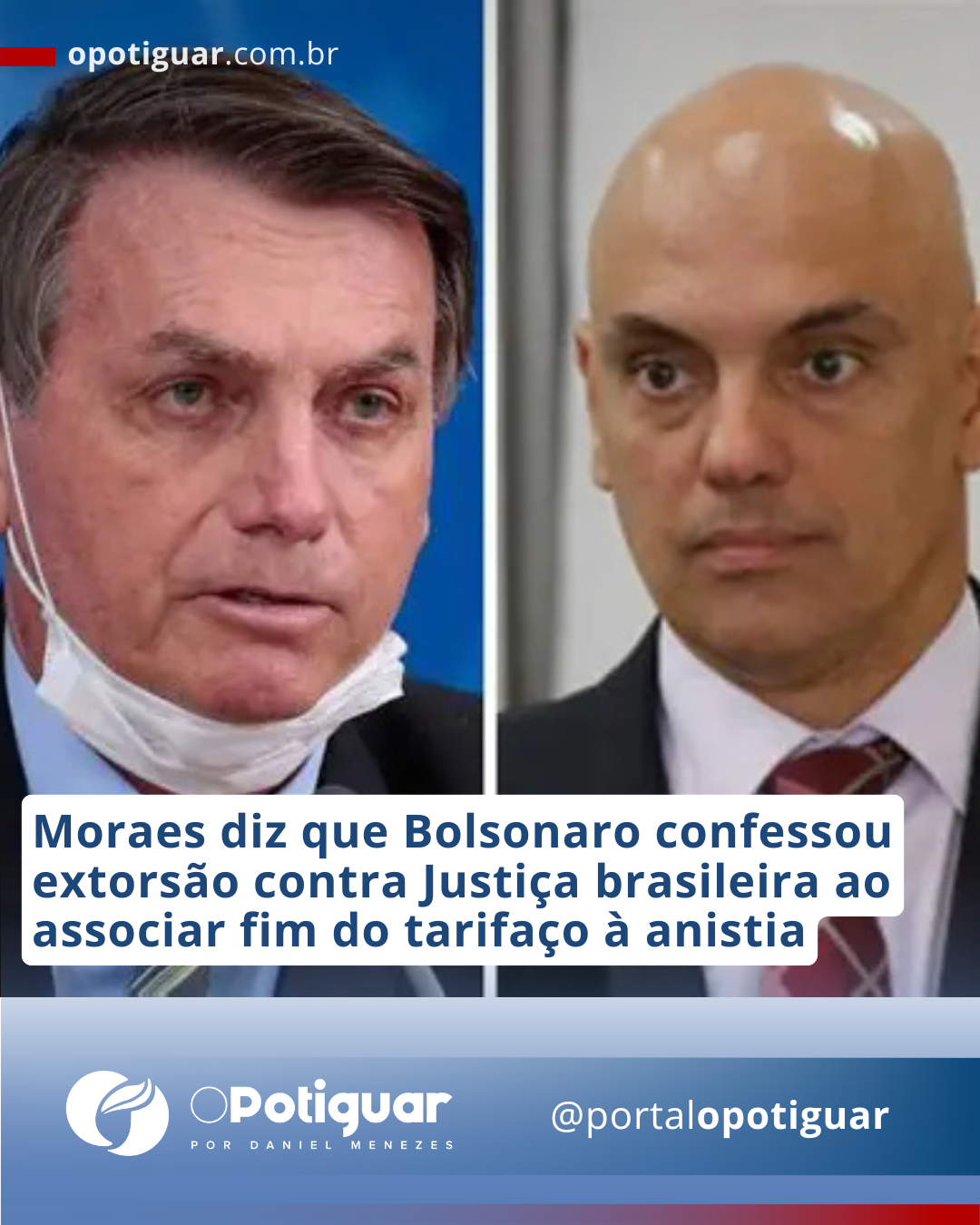 G1 - O ministro Alexandre de Moraes, do Supremo Tribunal Federal (STF) afirmou, ao impor medidas restritivas a Jair Bolsonaro (PL), que o ex-presidente confessou uma tentativa de extorsão contra a Justiça brasileira ao condicionar o fim do tarifaço de Donald Trump à própria anistia.