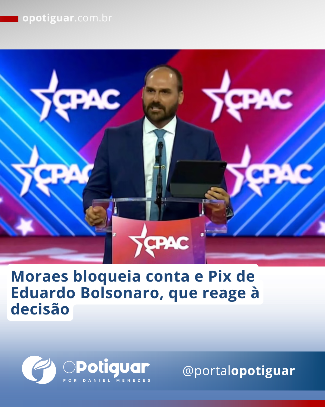 Do Metrópoles - O ministro Alexandre de Moraes (STF) bloqueou as contas do deputado federal Eduardo Bolsonaro (PL-SP). A informação foi revelada à coluna pelo próprio parlamentar, que tentou fazer duas transações via Pix, nesta segunda-feira (21/7), sem que conseguisse concluir as operações.