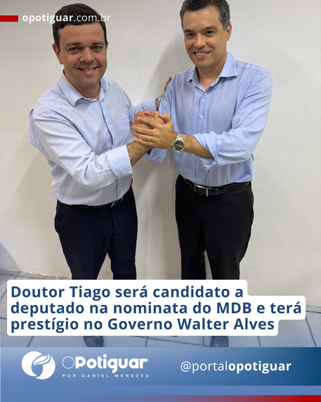 O vice-governador Walter Alves, presidente estadual do MDB recebeu nesta terça-feira (22), o prefeito de Parelhas, Dr. Tiago Almeida (PSDB) que foi convidado para ser candidato a deputado estadual pela nominata do MDB. Dr. Tiago é um aliado do presidente da Assembleia Legislativa, deputado Ezequiel Ferreira de Souza, que também caminha assinar a ficha do MDB e presidir a sigla. O convite foi feito e anunciado pelo próprio Walter Alves, que no próximo ano vai assumir o Governo do Estado, com a renúncia da governadora Fátima Bezerra (PT), para concorrer ao Senado.