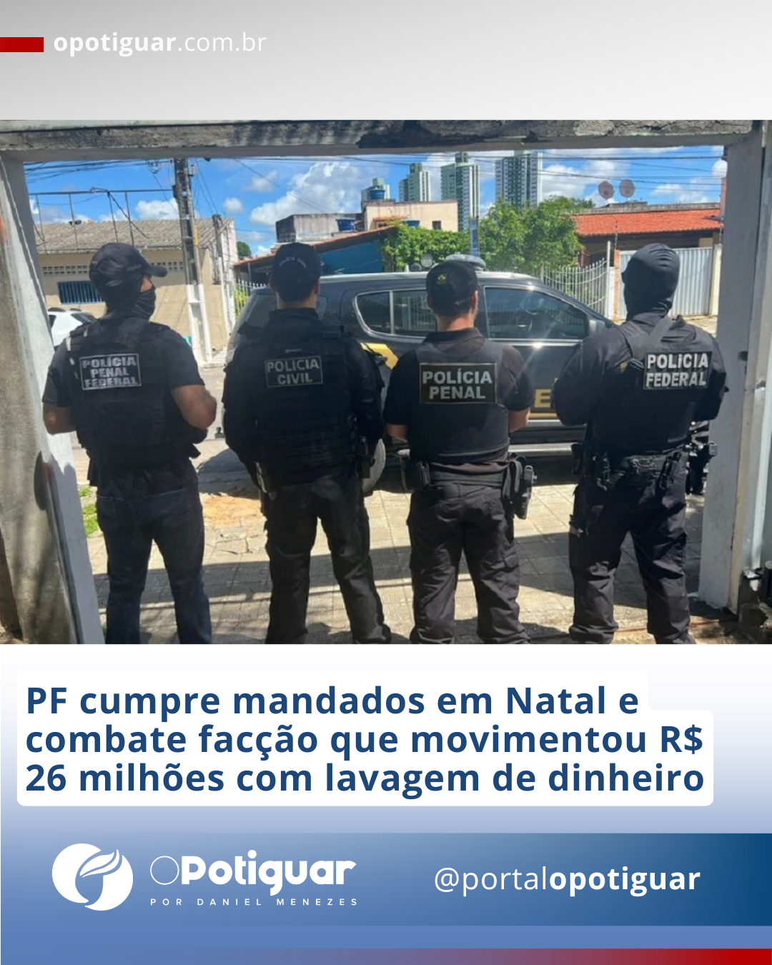 PF cumpre mandados em Natal e combate facção que movimentou R$ 26 milhões com lavagem de dinheiro