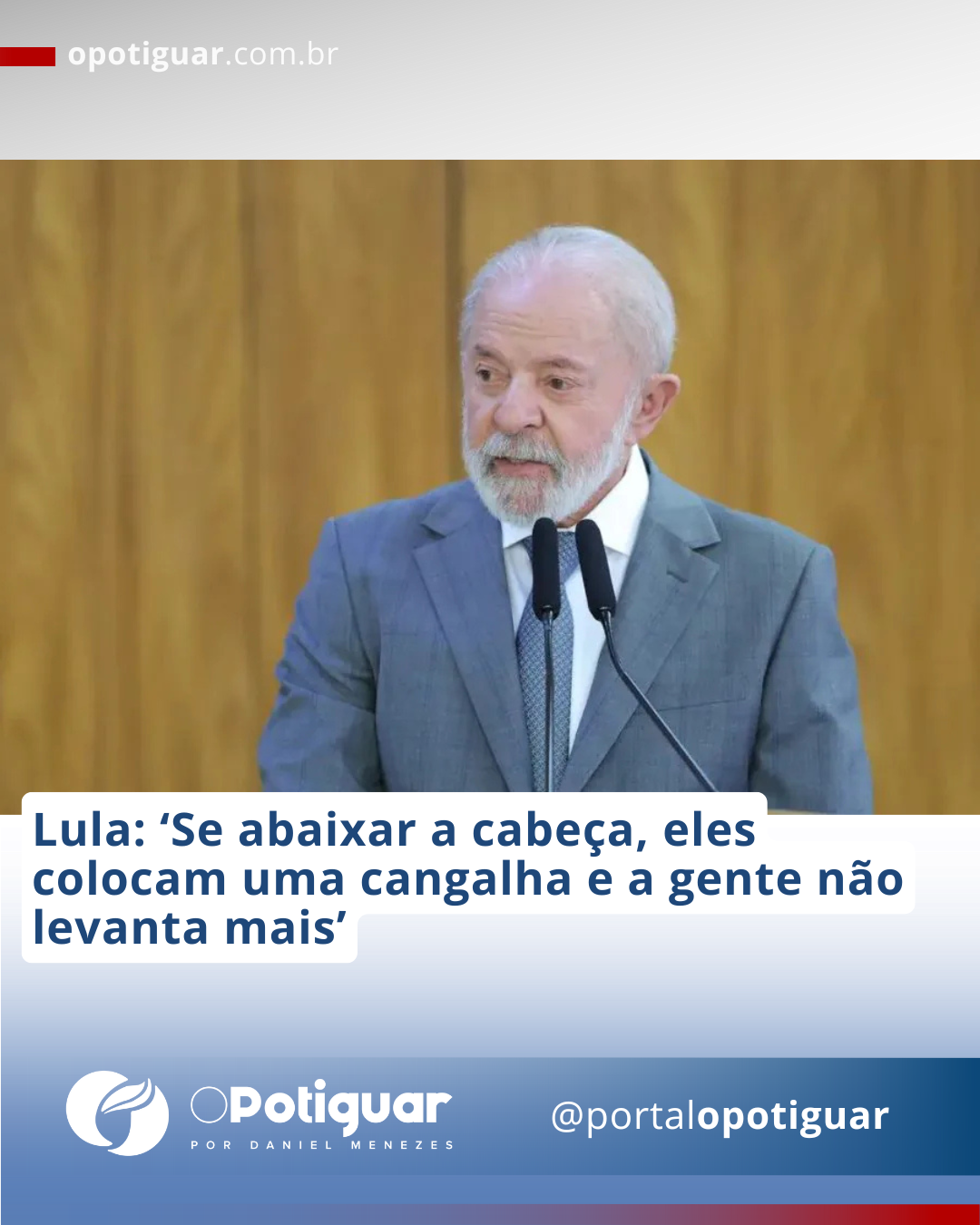 O presidente Luiz Inácio Lula da Silva disse, nesta quinta-feira (24), que vai continuar buscando negociações com os Estados Unidos e que vai apoiar o empresariado brasileiro que for prejudicado, mas afirmou que é preciso manter a cabeça erguida. “Não abaixe a cabeça nunca. Porque se você abaixar a cabeça, eles botam uma cangalha e a gente não levanta mais”, disse o presidente.