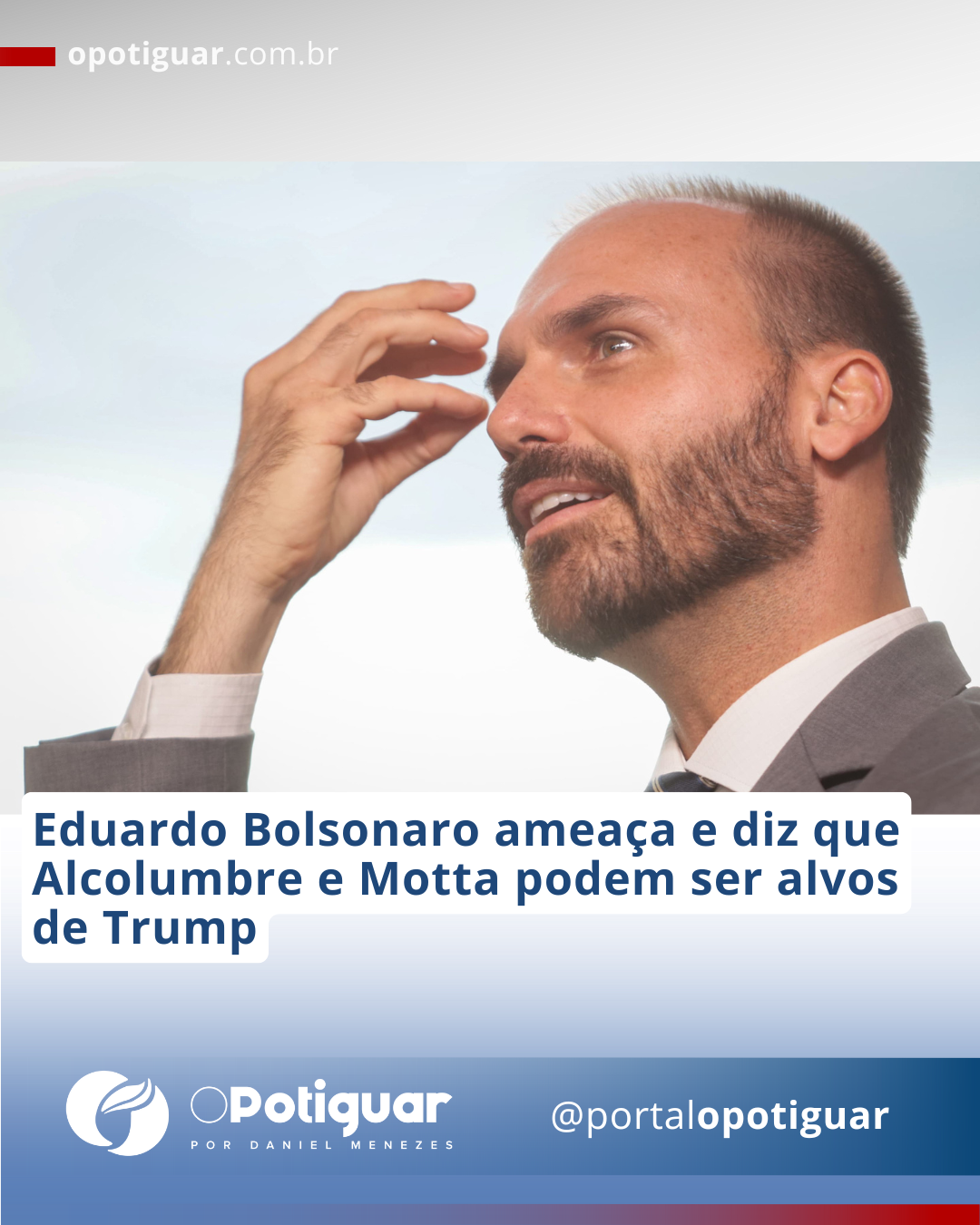 Do Metrópoles - O deputado federal Eduardo Bolsonaro (PL-SP) afirmou, nesta sexta-feira (25/7), que os presidentes do Senado, Davi Alcolumbre (União-AP), e da Câmara, Hugo Motta (Republicanos-PB), podem ser os próximos alvos da suspensão de vistos e sanções aplicadas pelo governo do presidente dos Estados Unidos, Donald Trump, após medidas semelhantes terem sido adotadas contra o ministro Alexandre de Moraes.
